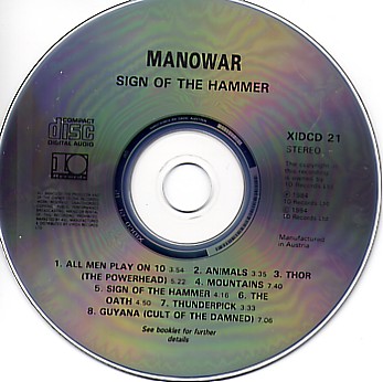 Sign of the Hammer; CD; Netherlands; 1984; 10 Records; XIDCD 21; Misprint: