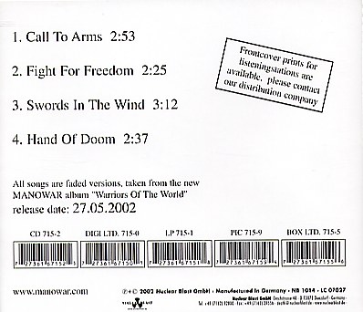 Warriors of the World; CD; Germany; 2002; Nuclear Blast; NB 1014; 4-Track-Promo,